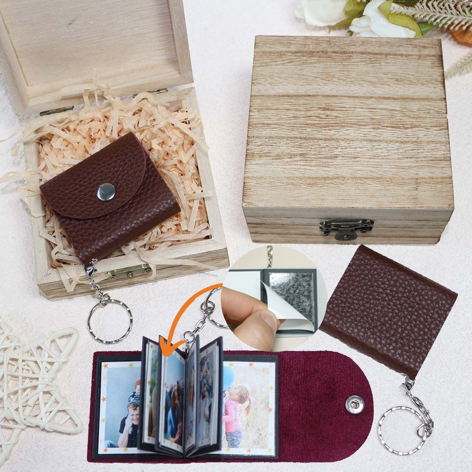 Mini Photo Keychain, Picture Keychains(Dark Brown) Personalized Album for Family