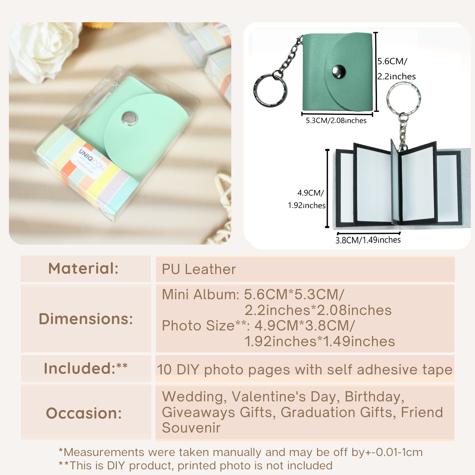 Mini Photo Keychain, DIY Small Custom Leather Memory Photo, Picture Keychains Personalized Album, Mini Cute Key Ring Keychain with Picture Book for Family, Boyfriend, Couples, Dog, Friends